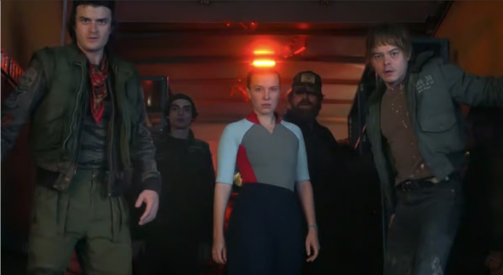 The final plan is underway and an amusingly swollen cast get moving to cross entire universes in order to put a climactic beatdown on big bad Vecna, expose all of his secrets and detonate the Upside-Down on the way back from rescuing the twelve children he’s spirited away to the neighbouring dimension known as the Abyss. With a multi-pronged attack which sees Hopper, Kali and Murray help Eleven launch a mental attack on the villain formally known as Henry Creel, the rest of the gang manage to worm their way into the Abyss to take the fight directly to the viney one.