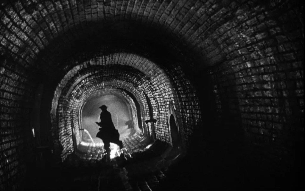 There are many places to start when it comes to praising the twisty virtues of The Third Man, but I genuinely feel like I’d be doing the visuals of cinematographer Robert Krasker a gargantuan disservice if I didn’t address them first. Simply put, not only is this one handsome looking film, it maybe one of the most beautifully shot noirs I’ve ever seen as the movie evokes the topsy-turvy world of a bombed out Vienna through the stern, unsettling lens of German Expressionism as we’re left decidedly off-kilter with a succession of Dutch angles and harsh shadows that pump up the surrealism of Holly Martins’ partly self-inflicted plight. But in addition to this, way the light dances off the wet, cobbled streets mean that this may be the most hauntingly gorgeous looking, bombed city cinema has ever witness – certainly you’ve never seen a sewer look so impressive it could stand in for an ornate cathedral.