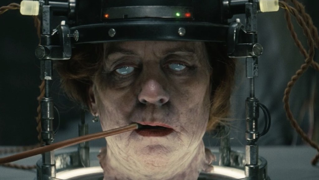 However, in a perfect example of cross storyline pollination, we find that the item powering the brain draining devices is actually the severed head of Congresswoman Welch, who we see back in 2077 urging Cooper to hand cold fusion over to the President of the United States (guess that must have totally backfired, right?). Of course, this gives Lucy the latest in a long line of moral dilemmas – because what’s Lucy without a dilemma – but those rapid fire surprises are proving to be the show’s major saving grace. I mean, while a big, neat, season finale is virtually impossible at this point, getting a cameo from Clancy Brown as the 2077 president (along with that Ron Pearlman voiced mutant I failed to identify before I wrote last episode’s review) and the fact that Thaddeus is now sporting a detaching arm and second mouth growing on his clavicle suggests that his decaying ass isn’t a Ghoul after all.