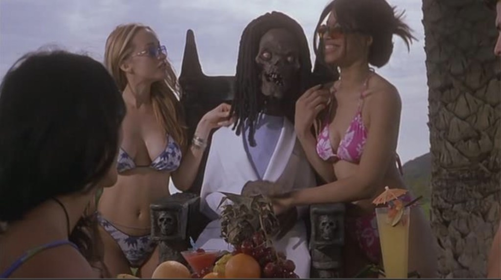 But despite the filmmakers attempts to try to get the most out of Grey (so to speak), there’s the sense that Ritual is a dance that never truly gets started. Despite a gooey (imagined) meltdown of a supporting character right out of the gate, the movie doesn’t seem overly keen to get its hands dirty, but the problem is that it’s reheated whodunit plot (or should that be Voodunit?) simply isn’t anywhere gripping enough to make up for the lack of typical, Crypt gore. Also, it’s ironic that for a movie about the Voodoo brand of zombies, most of the supporting cast also look like they’re under a powder induced trance. Craig Sheffer looks constantly distracted as if he’s desperately trying to remember his agent’s number; Daniel Lapaine seems lost altogether and Kristen Wilson’s Jamacian accent might actually be worse than the Crypt Keeper’s. But thankfully good sport Tim Curry is on hand to appreciate the constant view of scantily clad women near him and enjoy a sunny busman’s holiday, so at least someone’s having fun – even if it ain’t us.