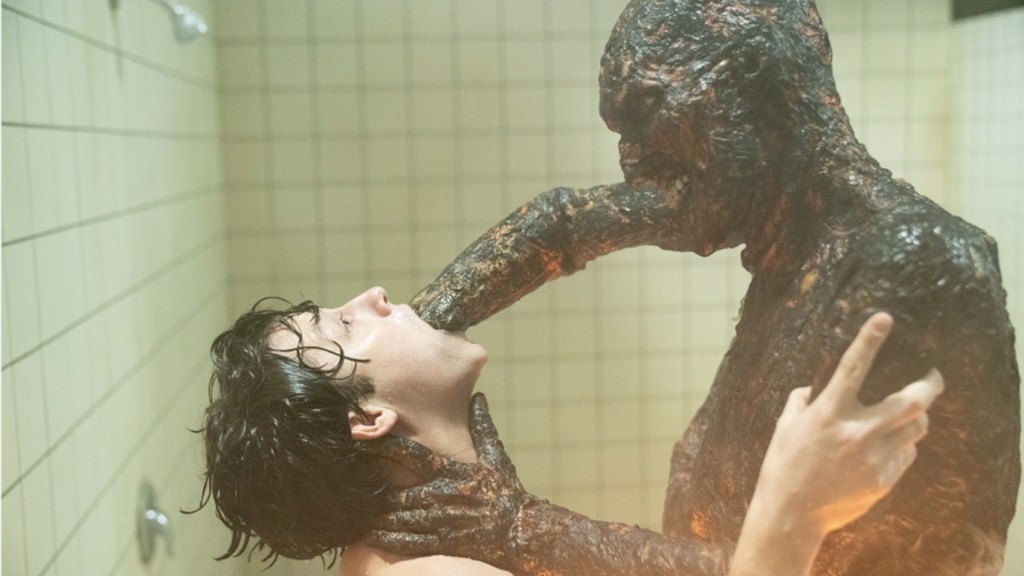 But while the cast, lead by the giant, doe eyes peeking out from the ghastly fringe of Logan’s Dafne Keen (arguably the worst fringe in horror since Courtney Cox in Scream 3), go through the motions of teen angst, rebellion against death itself and the early pangs of queer love, we all know that the majority of them a chiefly here to present us with some showstopping deaths and it’s here where Hardy truly gets to blow his own trumpet – or whistle. In a neat twist, the malformed creature that pursues you is the version of yourself at the moment of your death, so not only are the villains mauled dopplegangers ravaged by age, illness or some other, fucked up means, but the film stages them with a satisfying combination of both visual and real effects. In fact, there’s a couple of real standouts here too with one such victim succumbing to his own imolation and another (in the film’s best moment) excruciatingly watching all of his bones break and splinter as a lifetime of drunk driving comes calling.