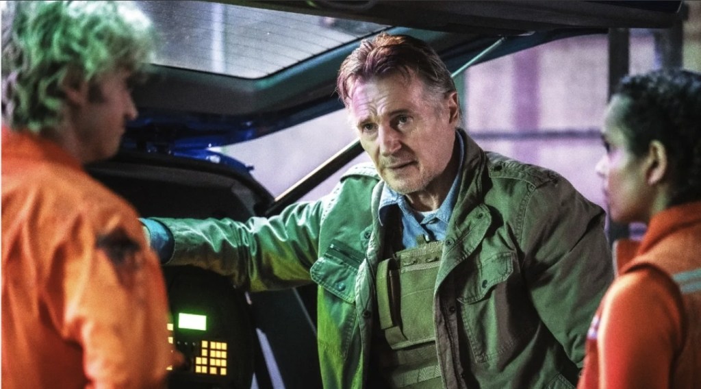 That doesn’t mean that the film is a complete washout. For a start, the comfortably filled plus column includes quite an impressive array of actors who bring a genuinely likable vibe to the film. Stranger Things VIP Joe Keery is on hand to deliver more Steve Harrington-esque charisma as a similarly lovable goof and stealth scream queen Georgina Campbell (Barbarian, Bird Box Barcelona, Psycho Killer) brings a sparkle-eyed energy to her perky single mom and the chemistry between the two crackles nicely. Elsewhere, we find Liam Neeson’s career change from creaky actioners to more sillier fare continuing nicely as the gravel-voiced bioterror operative tearing across the country, desperately trying to quash this virus before things really get out of hand. However, on a fun note, the movie takes a sneaky jab at his “old action guy” reputation by having his back finally give out during an action scene leaving him to try and shoot down puss-filled mutants while laid up on the ground. To continue the whole quirky feel of things, the cast also amusingly contains Lesley Manville and Vanessa Redgrave, but the movie frequently offers up a bunch of comedy characters without actually managing to take full advantage of them.