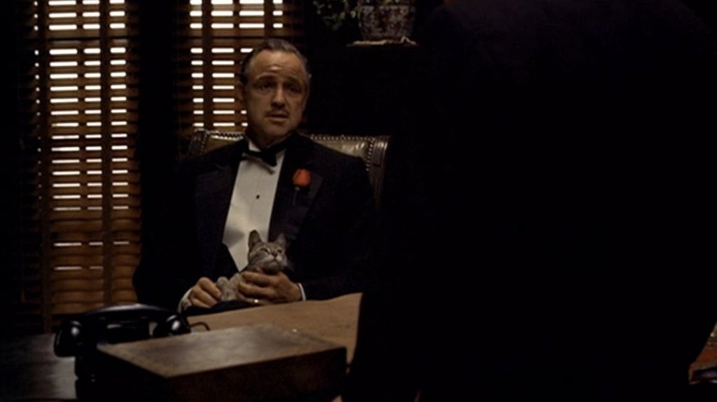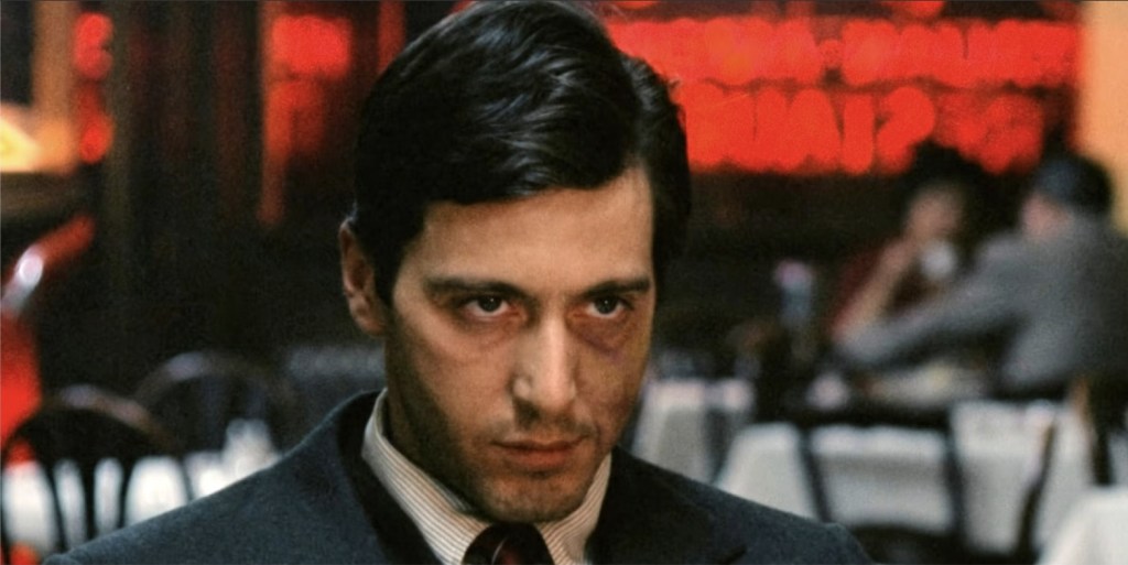 Michael Corleone is not only a World War II veteran who has recently returned from the war, but he’s also the youngest son of Don Vito Corleone, the head of the Corleone Mafia Family and “godfather” of the Five Families. While Michael’s military duties has managed to keep him out of the family business, short-tempered eldest brother “Sonny”, and sweaty fuck-up Fredo are neck deep in it alongside adopted brother and family consigliere, Tom Hagen. We gain entrance to the Corleone family on the day of Vito’s daughter’s wedding and as Michael shows his new girlfriend, Jay, around, Vito is taking various, underworld related requests upstairs.