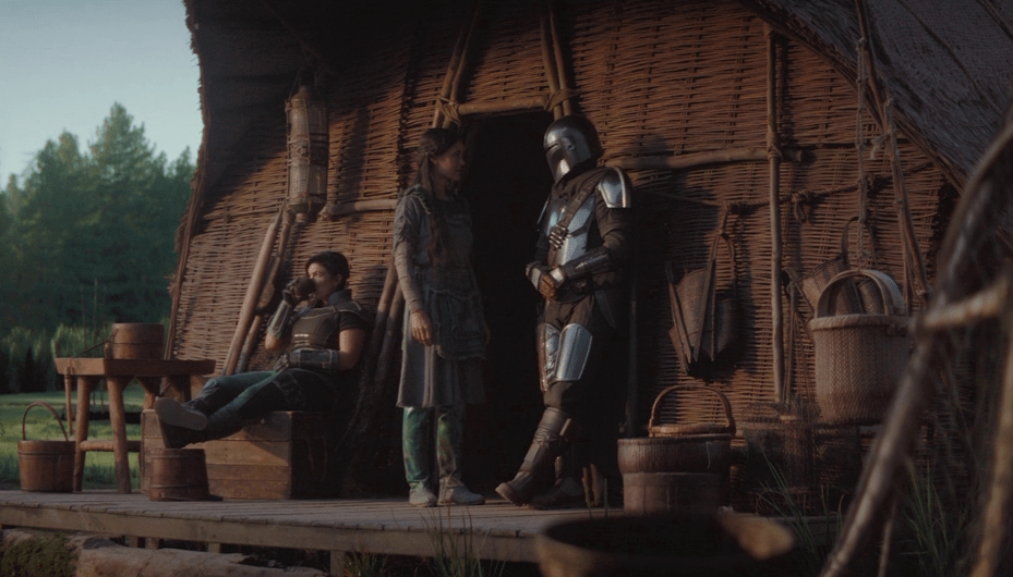 What follows is a familiar but effective narrative structure: the training of a village to defend itself. The Mandalorian and Cara work with the villagers to prepare for the inevitable attack, teaching them basic combat skills and setting traps. These sequences are deliberately paced, focusing on cooperation and growth rather than urgency. This a classic Seven Samurai trope that Star Wars relies on regularly.