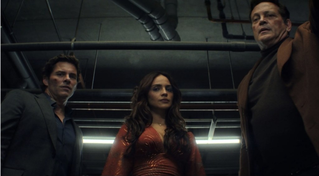 As we’re plainly in mash-up territory, I don’t anyone would mind if I use the laziest (but quickest and easiest) form of describing a weird film and just throw two film titles together in order to give you an idea what to expect. In fact, I think smooshing together Back To The Future with Things To Do In Denver When You’re Dead make a nicely accurate description of what to expect of BenDavid Grabinski’s madcap offering, although the time travel stuff itself tends to skew more into Hot Tub Time Machine territory rather than something like Looper. The main joke here is that for a lot of the film, James Marsden’s Mike and Eiza González’s Alice have to deal with not one, but two versions of the latter’s husband – both played by Vince Vaughan.