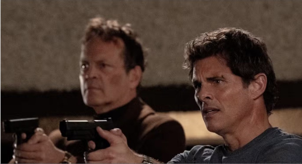 As you’ve probably guessed from both the strange title and the rather crazed plot description, we’ve got ourselves yet another zippy action comedy with an over abundance of personality and buckets of charm and I have to admit, considering the slasher genre has been playing fast and loose with mashing up movie concepts for a while with Happy Death Day, Freaky and It’s A Wonderful Knife, I’m surprised that action comedies have taken so long to catch up. As a result, the air is not only thick with glib one liners that leans heavily into mining time travel humour for all it’s worth (“The only person who can fuck this up is me.”) while delivering crazed action sequences that sit somewhere between John Woo and Chad Stahelski (but on a smaller scale). However, bolstering material that admittedly could crash and burn any minute is a cast who are more than game to try and make this cordite stained, sci-fi farce work.