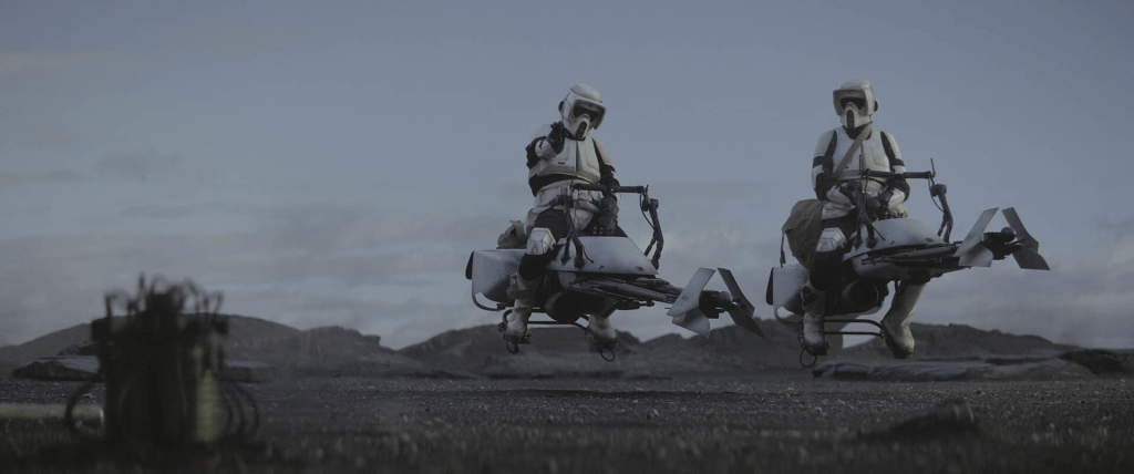 Directed by Taika Waititi, with series creator Jon Favreau continuing on scripting duties, the episode strikes a careful balance between humor and gravity, something that he sometimes struggle with. Waititi’s influence is most evident in the opening sequence, which features two scout troopers (Jason Sudeikis and Adam Pally) casually discussing their situation while guarding the captured child. The scene is unexpectedly funny, containing a troopers can’t shoot straight gag, humanizing characters who are usually little more than faceless soldiers, while also building tension in a subtle way, but once one of the troopers lays hands on the child you know it’s game over for them