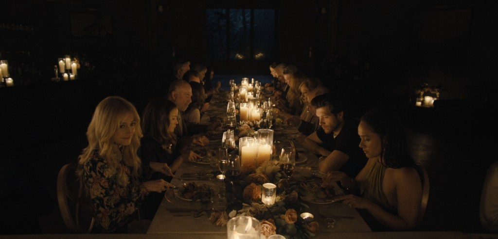 You see, due to the fact that a young Jules actually witnessed the bloody demise of Rachel’s mother nearly thirty years ago and heard her final plea. As he’s the sort who thinks the world revolves around him, the eldest Cunningham child now thinks it’s his purpose to try and save Rachel from a crimson fate and immediately starts trying to punch holes in her relationship with his brother, but all the bride to be wants to do is just get through her rehearsal meal which will see various offshoots of the Cunningham clan come to visit to see the happy couple.