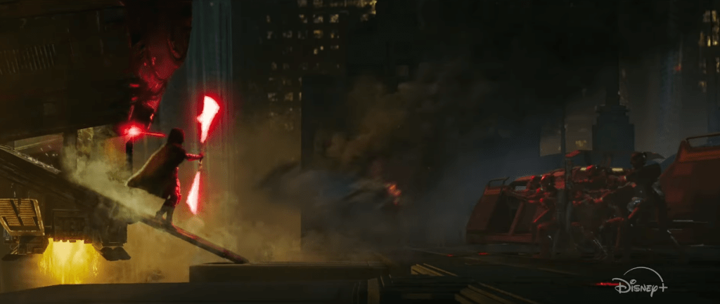 Action choreography excels as blaster fire and melee sequences are staged with care, allowing you to follow events even when it moving at pace. Maul’s duel with responding police units, accompanied by a restrained Duel Of The Fates, is handled with restraint. The music does not overwhelm but underscores the moment’s intensity.