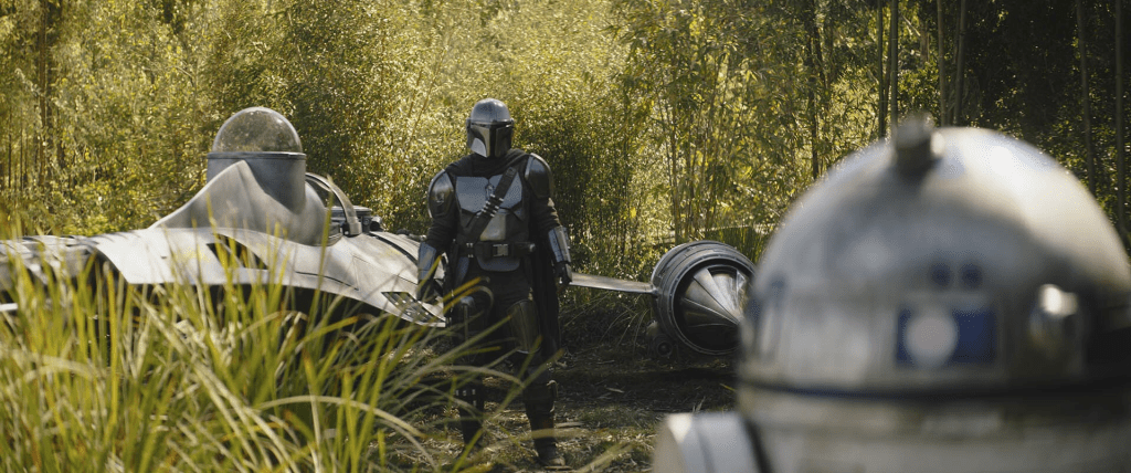 The episode opens by shifting focus away from Boba Fett back to Din Djarin, as he seeks out Grogu. This alone signals a tonal shift, re-centring the story on one of the most compelling relationships introduced in recent Star Wars storytelling. Din’s journey leads him to a forested world where Grogu is training under Luke Skywalker, portrayed through a seamless blend of performance and visual effects that continues to refine the character’s presence in this era.