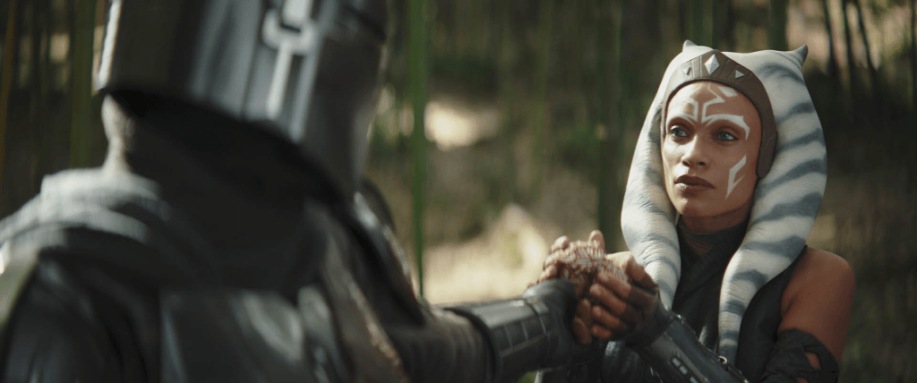 What follows is one of the episode’s greatest strengths: its willingness to slow down and explore character through quiet interaction. Luke’s training of Grogu is not about spectacle, but about philosophy – balance, attachment, and identity. These scenes echo the teachings of the Jedi while also questioning them, adding layers to both characters. Grogu’s struggle between his bond with Din and his potential path as a Jedi becomes the heart of the episode. The return of Ahsoka Tano, played by Rosario Dawson, adds further depth. Her calm, reflective presence bridges the gap between past and present, offering insight into both Luke’s journey and Grogu’s dilemma.
