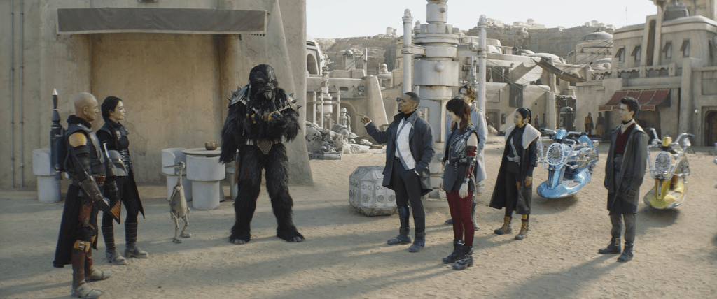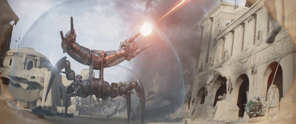 By this stage, expectations were firmly in place. The arrival of key figures and the escalation of tensions on Tatooine had set the stage for a full confrontation between Boba Fett’s growing alliance and the forces of the Pyke Syndicate. The episode commits entirely to that payoff, Leaning into its Western and crime-drama influences while still maintaining the larger mythic tone of Star Wars.