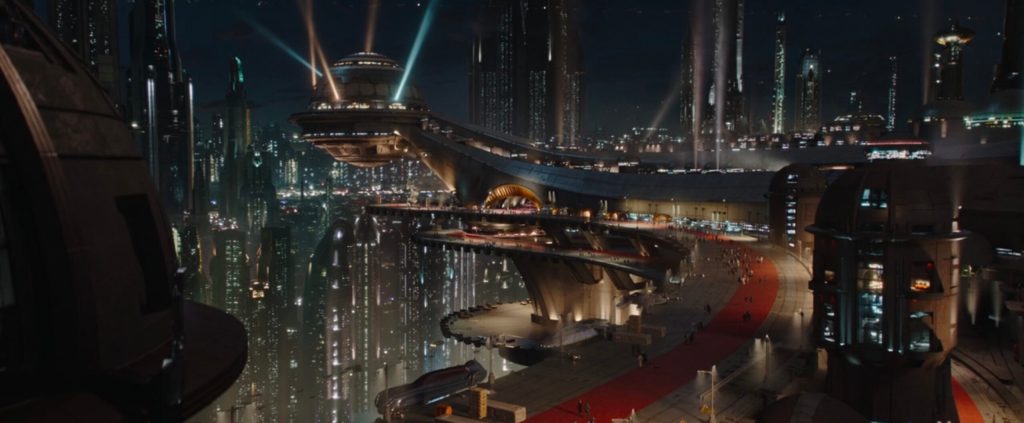 Visually, these scenes stand apart from the rest of the series. The clean, bright aesthetic of Coruscant contrasts sharply with the rugged, worn environments typically associated with The Mandalorian. This feels very much like the original trilogy versus the prequel trilogy with the shift reinforcing the divide between order and chaos, control and freedom. It’s choice that helps the episode stand on its own, even as it risks feeling disconnected from the main narrative.