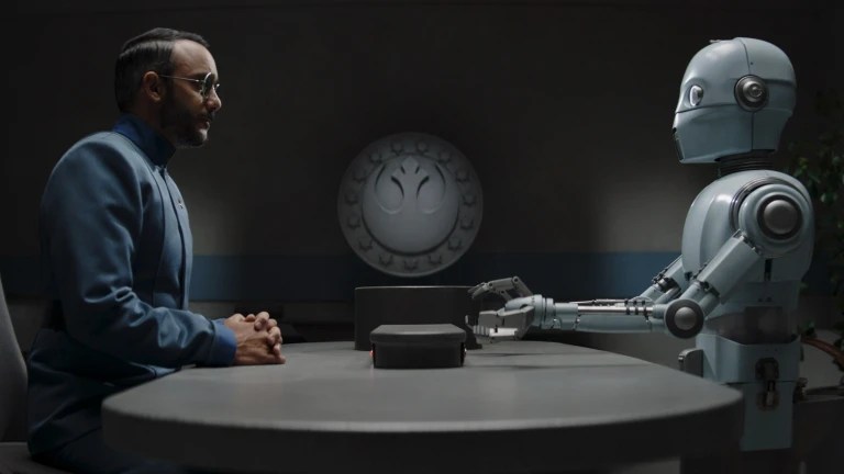 What follows is an extended focus on Dr. Penn Pershing, played by Omid Abtahi, a former Imperial scientist previously seen working with remnants of the Empire. His storyline unfolds on the city-planet of Coruscant, now under New Republic control. This setting, long associated with political power in Star Wars and featured in the prequel trilogy, is presented here in a more grounded, almost bureaucratic light.