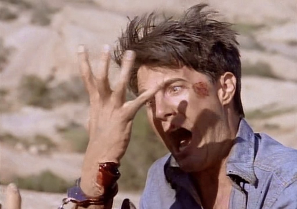 In fact, it’s the Walter Hill episodes that Carrion Death most resembles, as it accurately manages to evoke the hard bitten attitude, high-concept thrills and comes complete with viciously cruel sense of jet black humour that proves to be immensely satisfying. Following in the footsteps of Hill’s entries such as “The Man Who Was Death” and the superlative “Cutting Cards” de Souza plays with stripped back thriller conventions and delivers a turbo-charged, Hitchcockian half-hour that makes the absolute most of its muscular concept. Leading the charge is Blue Velvet’s Kyle MacLachlan, who at the time was a household name thanks to playing the coffee-sipping, pie-congratulating Agent Cooper in Twin Peaks, but his Crypt stint ironically sees him playing someone with all the self-control of Frank Booth.