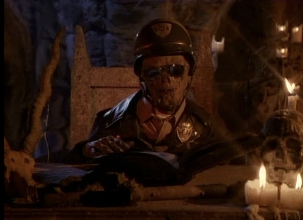 After the goofy, disappointing buffoonery of the previous episode, Steven E. de Souza’s Carrion Death rides in on a roaring hog to salvage the premiere with style to spare. Unless de Souza’s name has passed you by, you should know him as the screenwriter who penned such action classics as 48 Hours, Commando and a little, lesser-known little flick called Die Hard. Yes, he went on to write and direct the legendarily awful Street Fighter movie in 1994, but as Carrion Death was televised three years before that cocaine-dusted, cinematic car wreck, we’ll let him off. It’s also not hard to see how he got the gig as a lot of directors for these episodes are first timers who have worked with the core producers before – for example, not only has de Souza penned numerous scripts for producer Joel Silver, but he’s also worked with Walter Hill too.