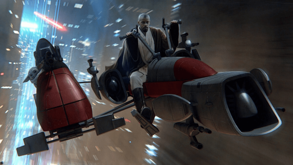 Interwoven with the present-day storyline are flashbacks to Grogu’s past, depicting his escape from the Jedi Temple during Order 66. These sequences are among the episode’s highlights, offering long-awaited insight into one of the character’s most mysterious chapters. The return of Jedi Master Kelleran Beq (a character from short lived YouTube kids gameshow), played by Ahmed Best, is both surprising and meaningful, adding a layer of real-world significance for longtime fans. Best, long associated with Jar Jar Binks, is given a moment of redemption of sorts here, stepping into the role of a capable, courageous Jedi who plays a direct part in saving Grogu’s life. His performance brings both urgency and quiet authority to the sequence, grounding the chaos of the temple’s fall with a sense of purpose and heroism. This is a powerful full-circle moment, transforming an actor once at the centre of divisive reactions into a figure of respect and admiration within the canon. The flashbacks are elevated significantly by his presence, turning what could have been a simple exposition device into one of the episode’s most memorable and meaningful contributions.
