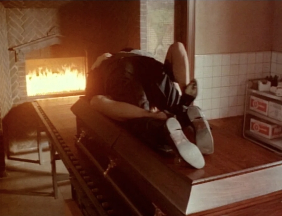 If this sideburned idiot is going to have any chance of pulling this scam off, he’s going to need the help of his good-hearted, but bullied younger brother, Billy, who just so happens to work as a coroner. As the three rearrange the furniture to make it look like a robbery gone wrong, Billy ensures that Lou’s cadaver make up and fake knife wound look real enough to fool the police who answer the call and due to some sort of miracle, they manage to pull it off. Similarly, they also manage to fool Lou’s devoted mother, despite having an open casket funeral – but as it seems that the thuggish slob is free and clear, it seems that Irene and Billy have fallen for each other.