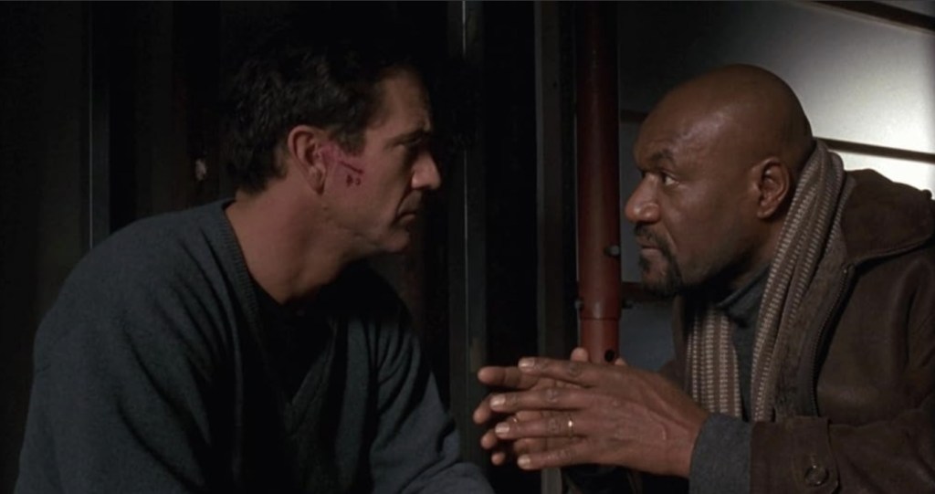 For it’s first hour, Ransom play exactly how you think things are going to play, with Howard focusing mostly on the mental trauma forced upon both Gibson and his Lethal Weapon co-star, Rene Russo as Delroy Lindo’s FBI agent tries to guide them through the finer points of not having their child mailed back to them in pieces. Watching both the leads try to outdo each other in feigning the horrifying grief and nauseating worry a parent goes through in a situation like this is perversely fascinating, with Gibson that his shaky fidgeting can match Russo literally dry heaving in panic. Similarly, Howard and a script by Richard (The Color Of Money) Price ensure that they cover the spread by also exploring the misadventures of the kidnappers beyond just being threatening voices on the phone. Forming the unsavory characters are a tattooed Lili Taylor, a hulking Liv Schreiber, a drugged out Evan Handler and a simple-minded Donnie Wahlberg and their tenuous union us only held together by the haggard looking eyebags of Gary Sinise’s corrupt scumbag cop. Watching the screws tighten on the bad guys just as much as it does on the good guys would be gripping enough as is, but the film throws in a mid-flick twist that proves to be the sweet spot.