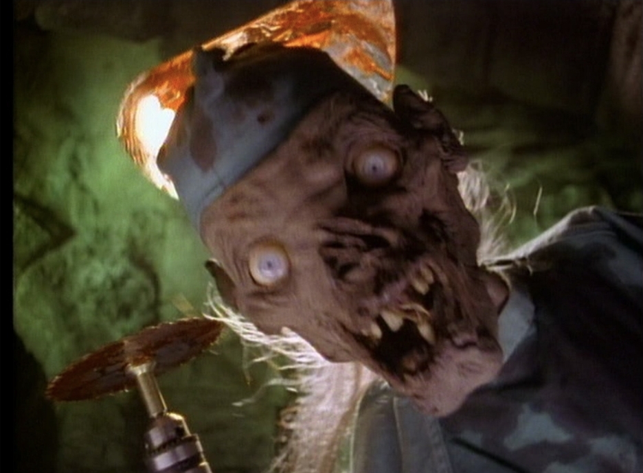 While Abra Cadaver sometimes struggles within the limitations of its budget, it’s exactly this sort of bizarre experimentation I was hoping season three would have more of, I mean, why waste time on delivering endless stories of the same old stuff, when you can go for broke and try something vastly different for a change? Hopkins seems to agree and as a result, his episode relies heavily on POV shots as we watch Carl’s ordeal through his black, lifeless eyes as his brain gives us a panicked, frantic play by play of all the horrible shit that’s happening to him. But beyond a truly creepy concept, another thing that helps Abra Cadaver stick in the mind is that it feels very much like a spiritual sequel to a rather notorious film from the eighties.