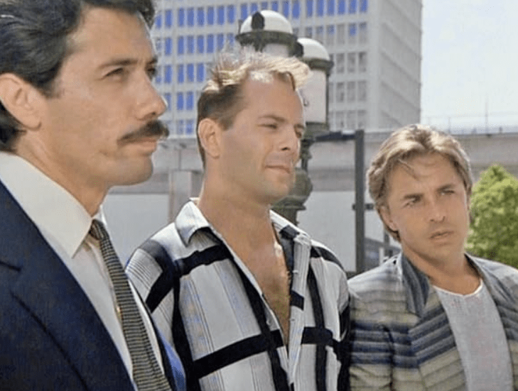 It begins with Crockett and Tubbs, under the calm command of the newly arrived Lt. Martin Castillo, carrying out a bust on some arms dealers. The sting nets them pair of lower-level traffickers who point them towards Tony Amato (Bruce Willis in his first credited role). Amato is an ambitious international arms supplier planning to sell stolen Stinger missiles to a Jamaican buyer. The Vice squad goes undercover to infiltrate Amato’s operation, planting surveillance devices in his luxurious waterfront home on Ocean Drive. It’s then that a team of Federal agents step in and tell the team to back off.
